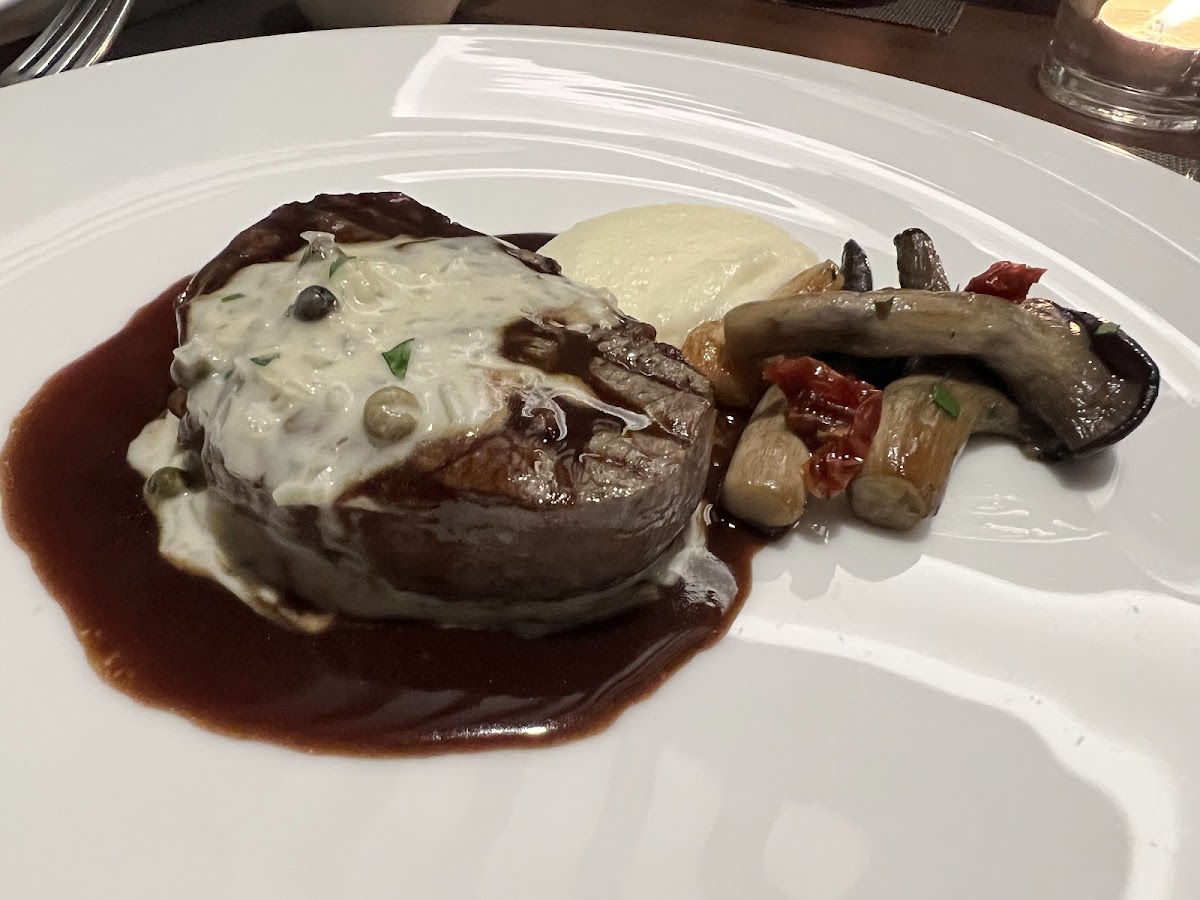 Gorgeous building, delicious food, great service. Set menu with choice of fish or beef for main course.